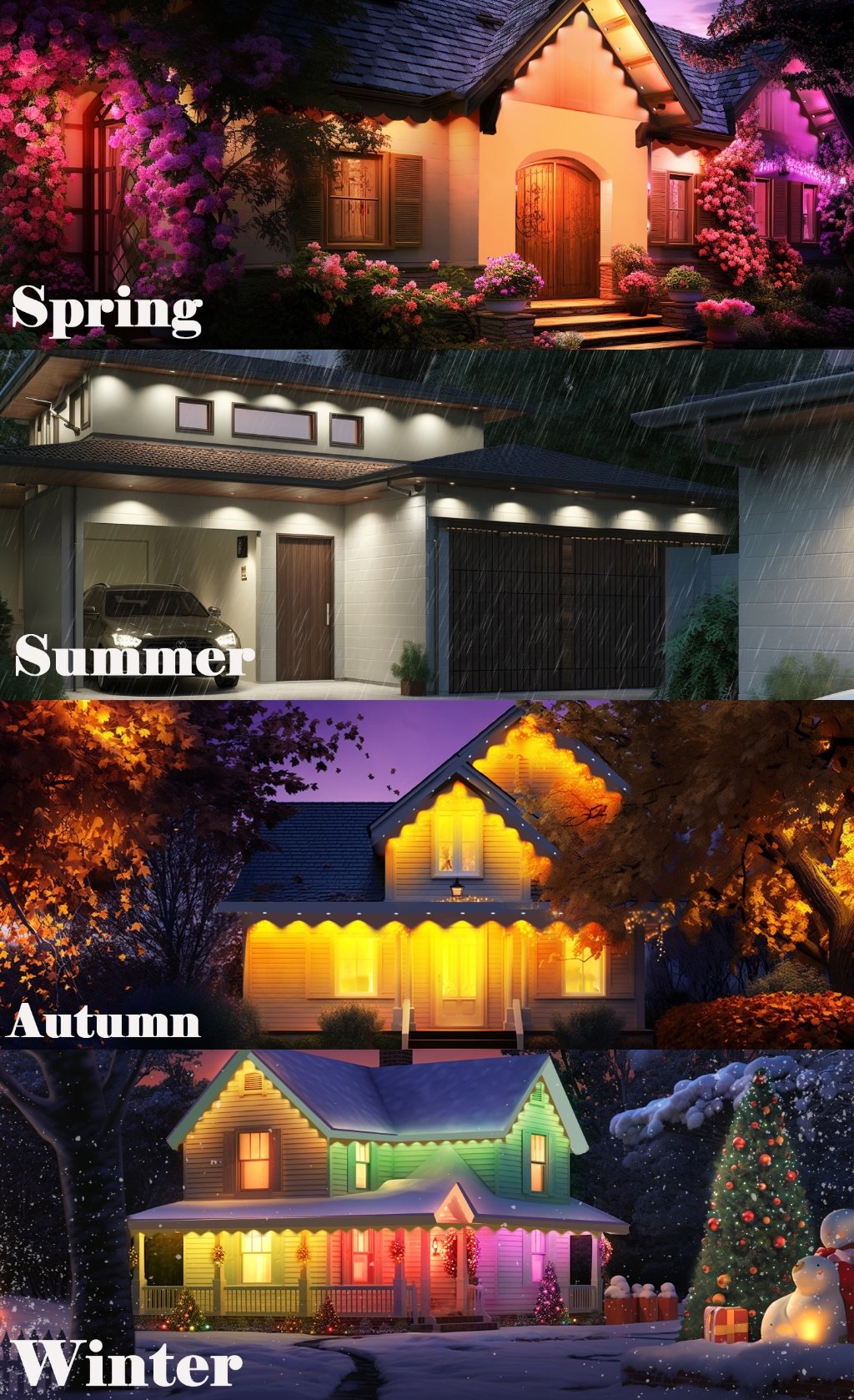Have complete control at your fingertips with our intuitive smartphone app. Illuminate your home with a touch, switch between a spectrum of vibrant colors, and set timers to sync with the rhythm of day and night. Your holidays have never been brighter.